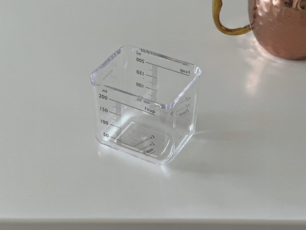 目もりが両面に書かれていて、四角どこからでも注げるようになっているのもありがたい。